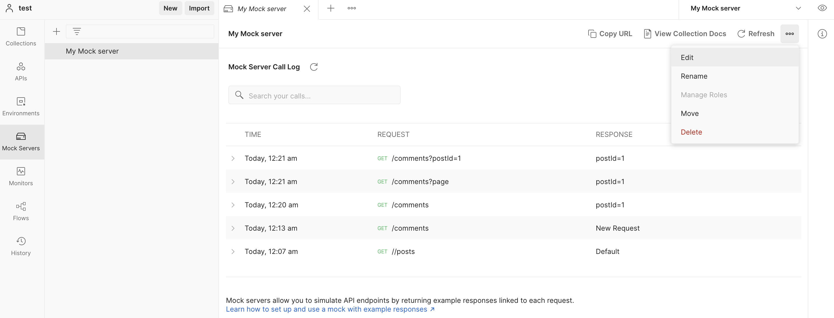 1. 在 Mock Servers Tab 打開之前創建的 Server,按下 Edit